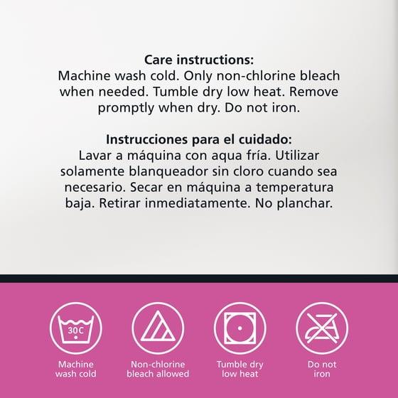 - Easy Care Instructions machine wash cold, only non-chlorine bleach when needed, tumble dry on delicate/low heat 60+-6 C or 140+-10 F. Max dryer exhaust temperatures vary by brand. It is recommended that the lowest dryer temperature be utilized and that the item be removed when it is dry rather than when the dryer stops running, do not iron