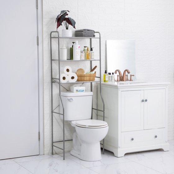 - Mainstays Over the Toilet Steel Storage Shelf Unit Space Saver, Satin Nickel