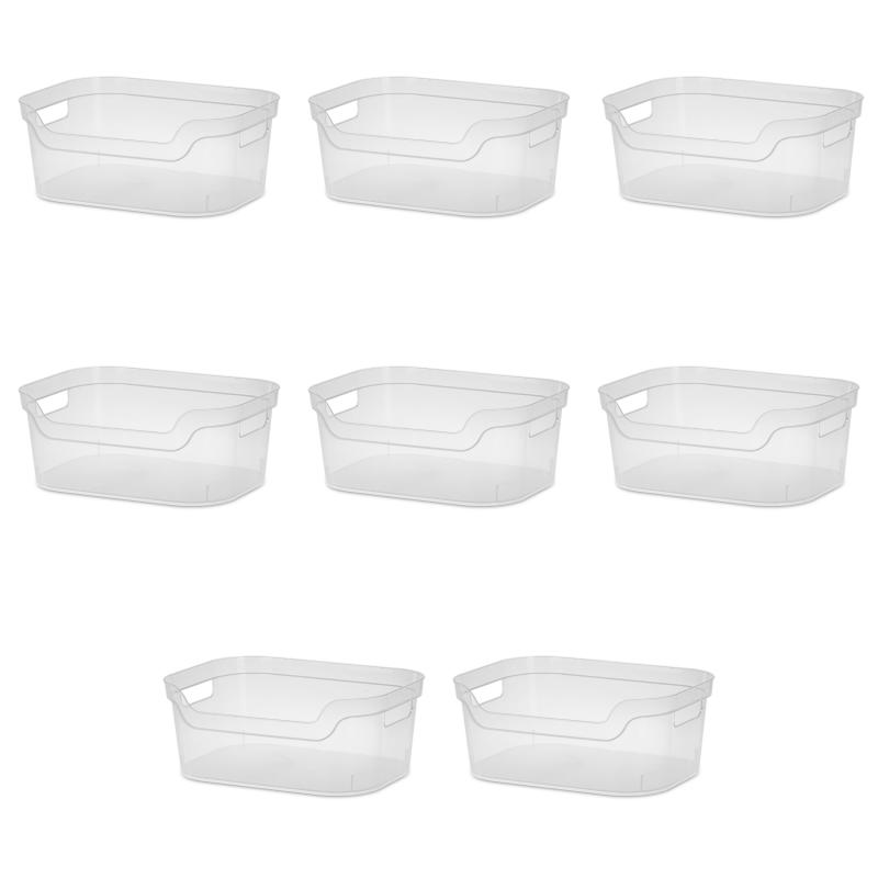 Mainstays Medium Open Bin, Clear Plastic, Easy Access Bin with Scoop Front, Clear, 8 Pack