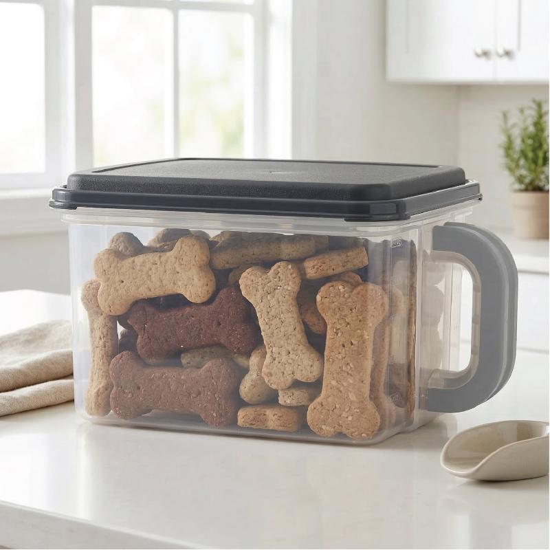 Mainstays Medium Plastic Canister with Handle, 21 Cups, Gray Lid and Handle, Made for Pantry Organization and Food Storage