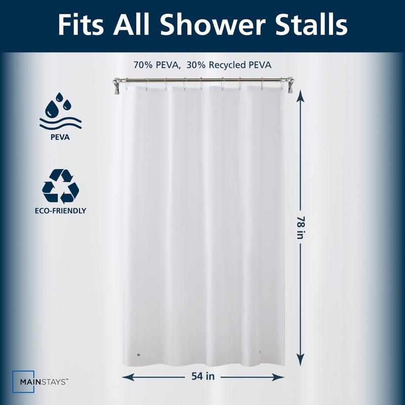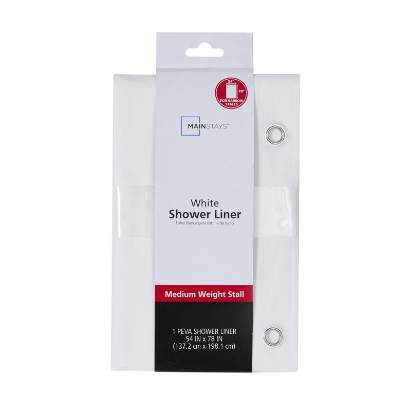 - Mainstays Medium Weight PEVA Shower Liner 54" x 78" for Bathroom Stall, White
