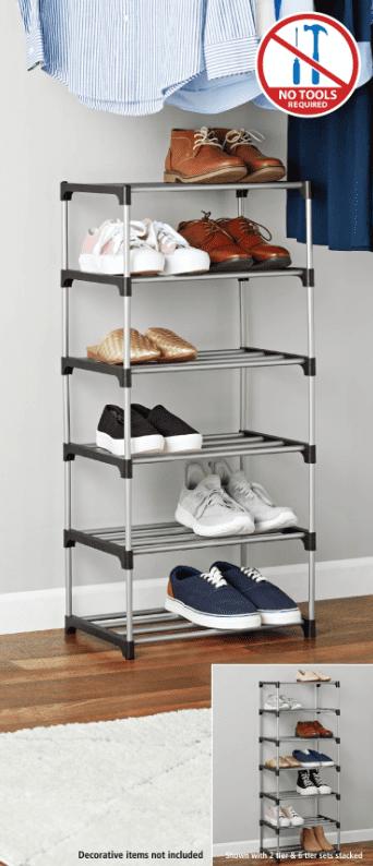 - Mainstays 6 Tier Customizable Shoe Rack;