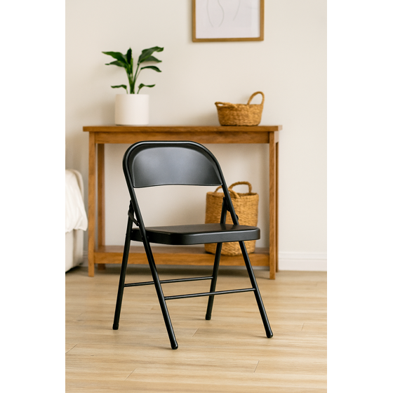 Mainstays Metal Folding Chair, Black, Steel Frame, Space-Saving Design