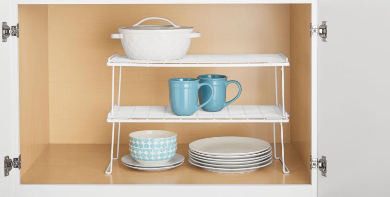Mainstays Metal Wire Stacking Shelf Organizer for Kitchen Cabinet and Pantry Storage, 22" x 10" x 7", White