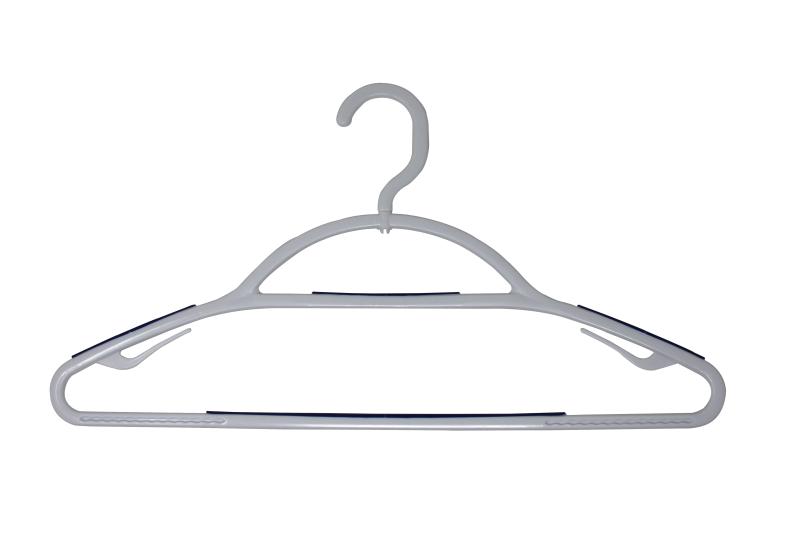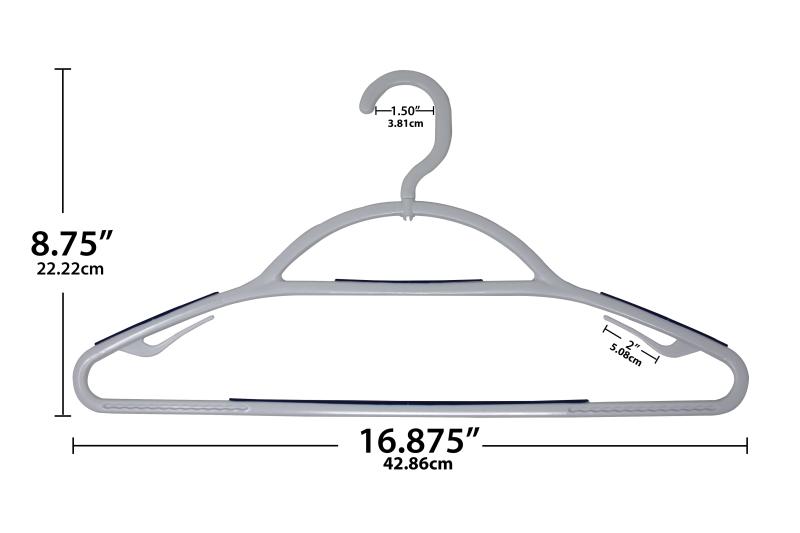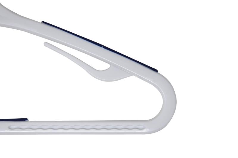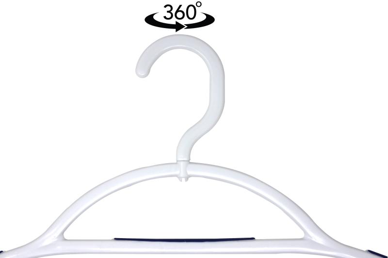 Present and organize your heavier clothing items with both style and functionality using this 5 pack of Nonslip Swivel Neck Plastic Hangers from the home experts at Mainstays. Designed to effectively keep your suit jackets, pants and skirts perfectly placed and durably hung up, these thoughtful hangers boast non-slip blue pads and a unique swiveling neck to hang clothes however you want. An ideal alternative to flimsy conventional wire hangers and abrasive wood hangers, this pack of 5 arctic white Nonslip Swivel Neck Plastic Hangers are designed with garment hooks for straps and a handy non-slip pant or accessory bar for a variety of items. Certain to spruce up mismatched, unsightly hangers in your closet, these bright and modern non-slip hangers are perfect for any space where you hang garments from guest rooms to your chic master suite or walk-in. Use in hallway closets or guest rooms to impress all that come into your home and happily say goodbye to the days of shabby, mismatched hangers that do not hold your suits. These hangers are perfect for adults and is made of plastic.