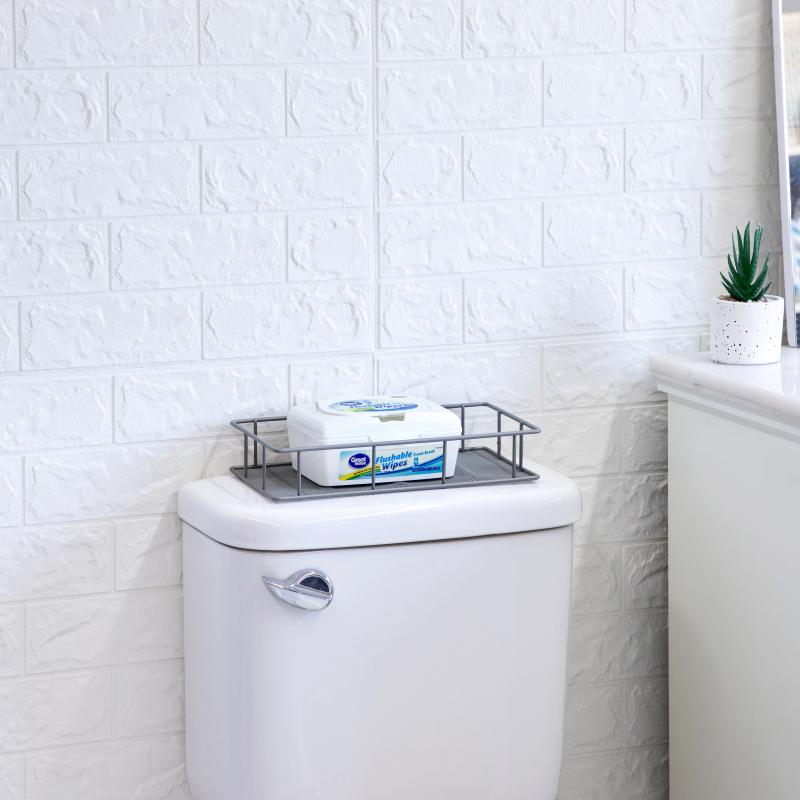Mainstays Over-the-Toilet Bathroom Storage Shelf Unit Set with Space Saver, Basket and Hooks, Satin Nickel, 4-Piece