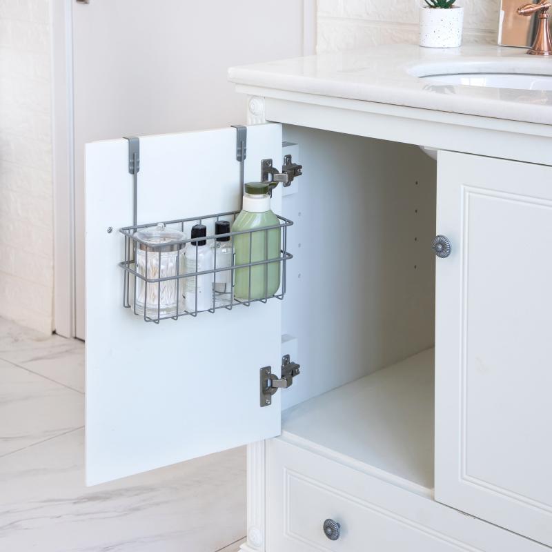 - Includes a 3-shelf space saver, wire basket, over-the-door 4-hook organizer, and handy hanging basket