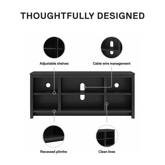 - SIMPLE AND AFFORDABLE: Crafted from sturdy engineered wood, this stand assembles easily and fits seamlessly into modern living areas