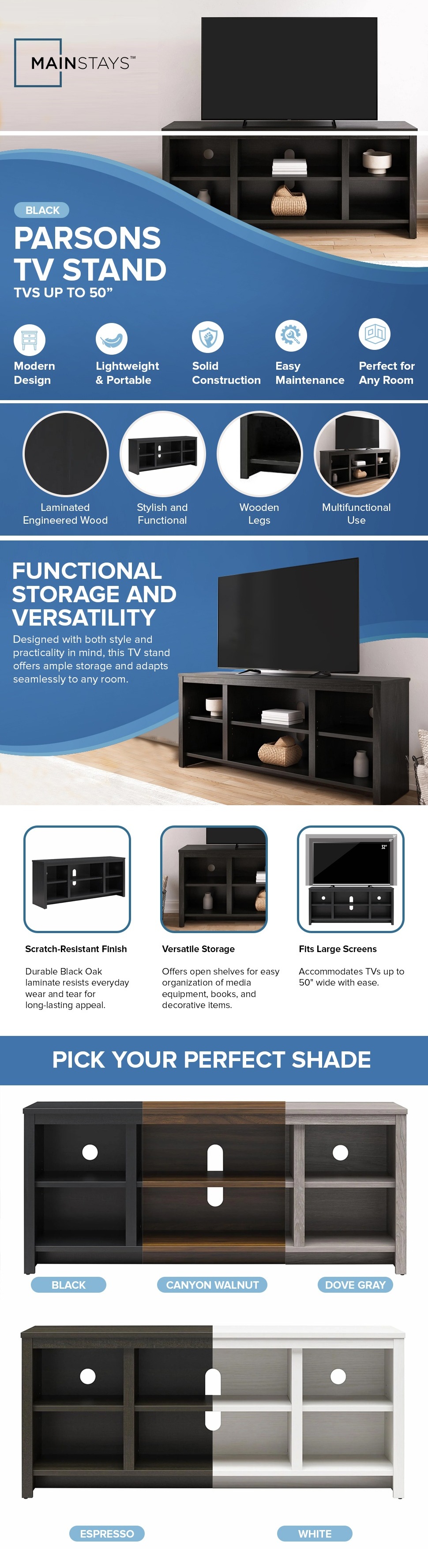 - VERSATILE DESIGN: Update the center of your living room with the Mainstays Parsons TV Stand