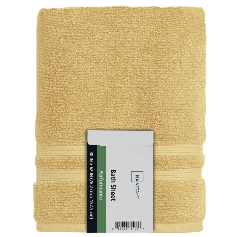 Mainstays Performance Cotton Bath Sheet, Oversized Super Soft Quick Dry Fade Resistant, Solid Yellow