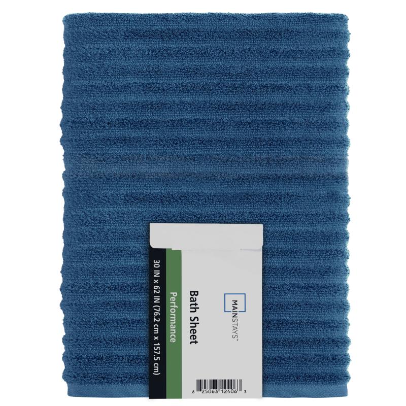 Mainstays Performance Cotton Bath Sheet, Oversized Super Soft Quick Dry Fade Resistant, Textured Navy