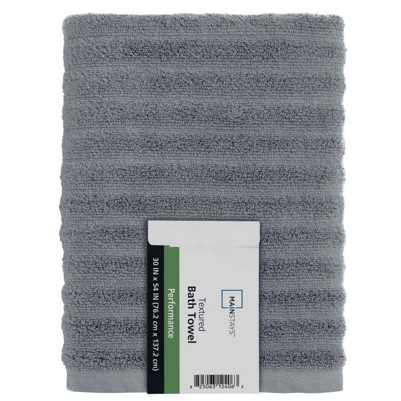 Mainstays Performance Cotton Bath Towel, Super Soft Quick Dry Fade Resistant, Textured Grey