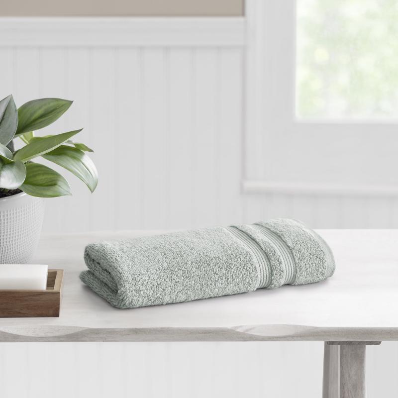 Mainstays Performance Cotton Hand Towel, Super Soft Quick Dry Fade Resistant, Solid Light Green