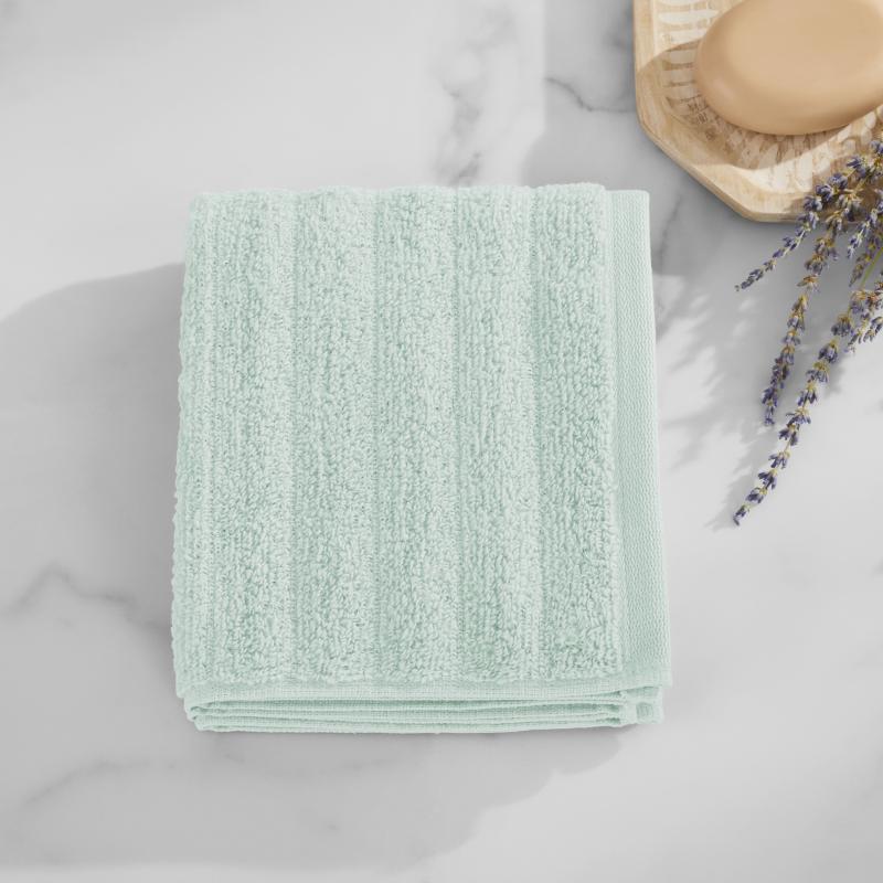 Mainstays Performance Cotton Hand Towel, Super Soft Quick Dry Fade Resistant, Textured Light Green