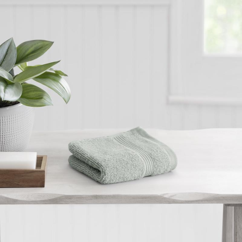 Mainstays Performance Cotton Washcloth, Super Soft Quick Dry Fade Resistant, Solid Light Green