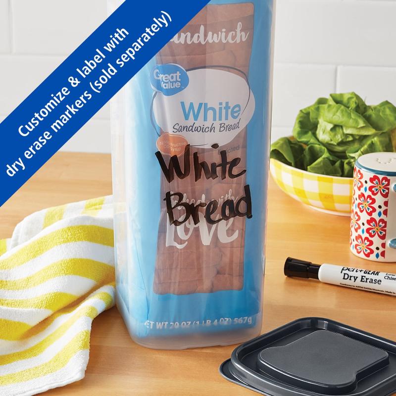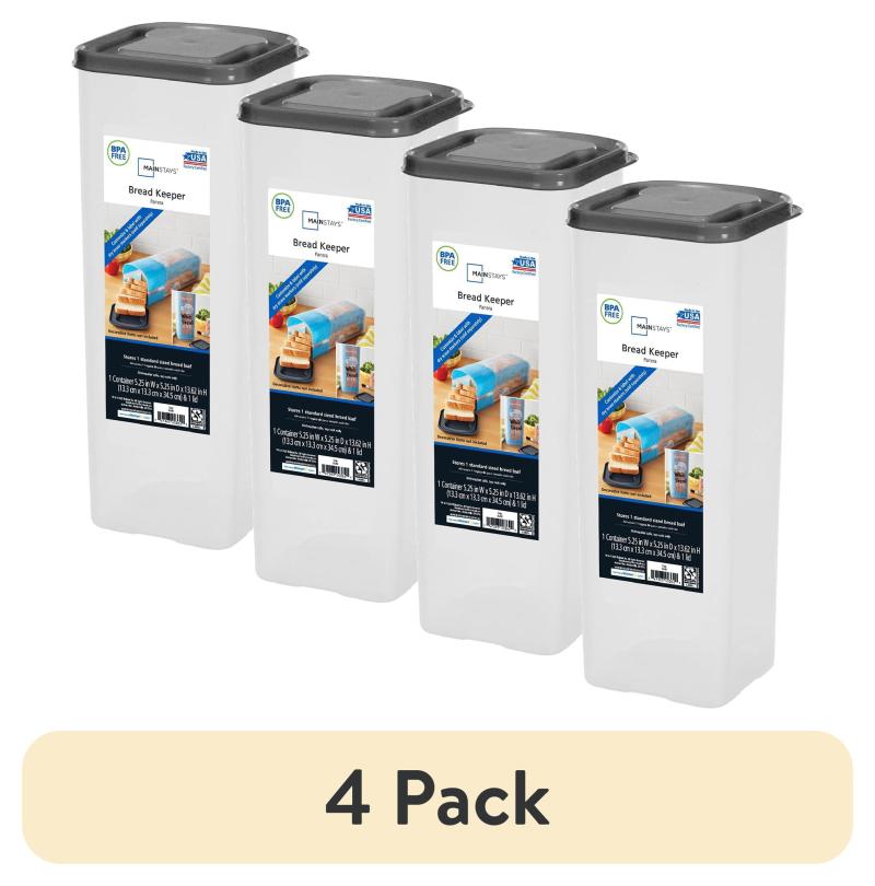(4 pack) Mainstays Plastic Bread Bin and Bread Storage Keeper Container with Lid, Pantry Bread Organizer for Loaf Bread and Food Storage, Clear with Gray Lid, 5.25" x 5.25" x 13.62"