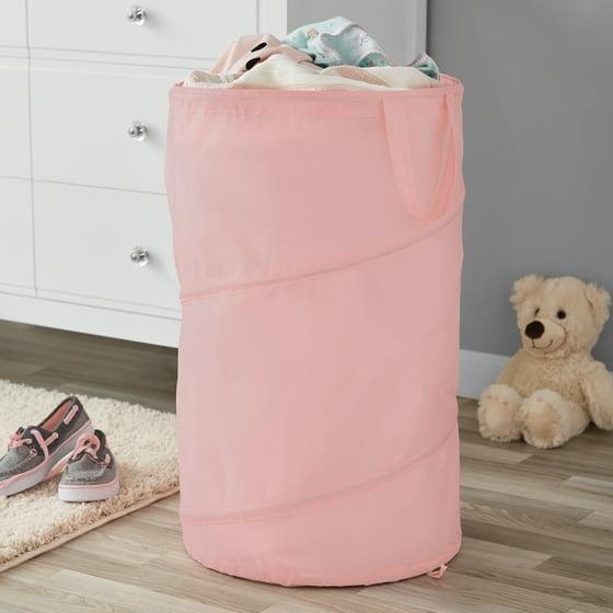 Tackle laundry day with ease using the Mainstays Pop-Up Spiral Polyester Laundry Hamper in Pink. This lightweight yet durable hamper is designed with a flexible spiral frame that pops up for instant use and folds flat for convenient storage when not in use. Made from breathable polyester mesh, it allows air to circulate, helping reduce moisture and odor buildup on clothes and linens. With a generous capacity that holds up to two loads of laundry, this hamper is ideal for bedrooms, dorms, apartments, or bathrooms. The built-in handles make it easy to carry from room to room, while the collapsible design makes it a smart space-saving solution for any home.