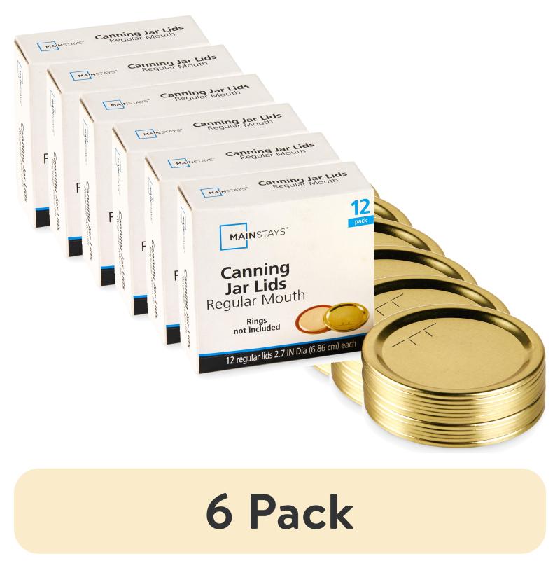 (6 pack) Mainstays Regular Mouth Canning Lids - Airtight Mouth Mason Jar Lids for Canning and Food Preservation