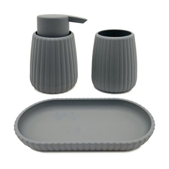 - The Mainstays Rubberized Plastic Ribbed Accessory Tray features a unique ribbed design that adds a touch of sophistication and modern flair to your bathroom decor.