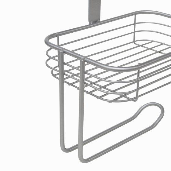 - • Satin nickel finish fits into any décor •Hanging functional toilet paper holder •Perfect for small bathrooms with limited storage space