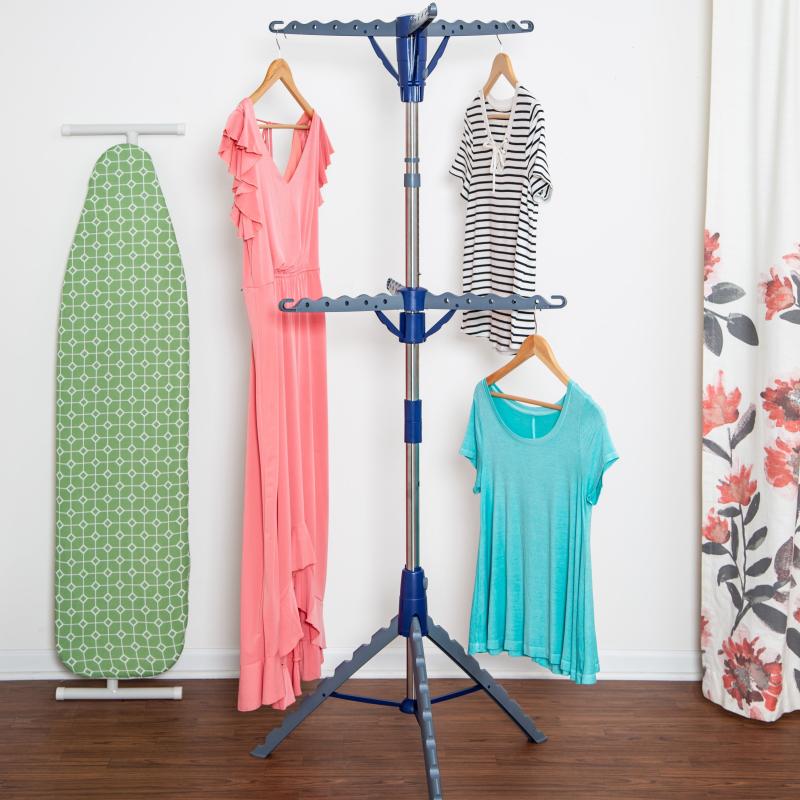 Mainstays Space-Saving 2-Tier Steel Tripod Hanging Clothes Drying Rack, Blue/Silver