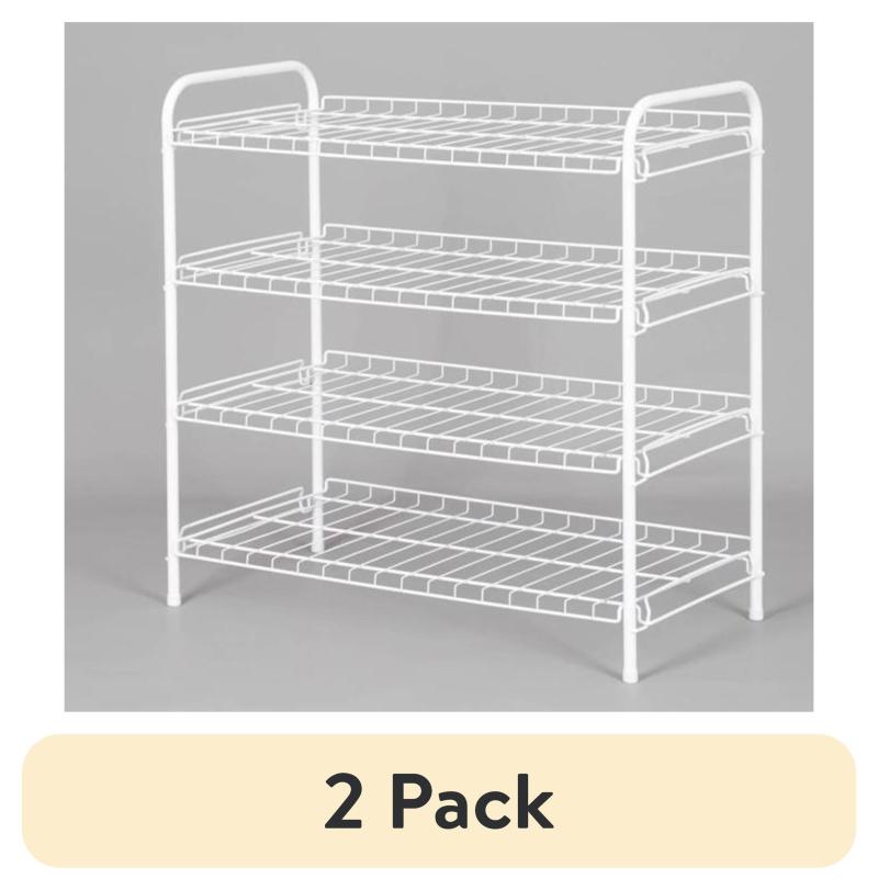 (2 pack) Mainstays Steel Wire Shoe Organizer, 4-Tiers, 12 Shoe Pair Capacity, Durable Shoe Rack, White