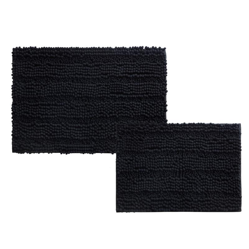 Mainstays Textured Black Chenille Polyester Bath Rug Set, 2-Piece