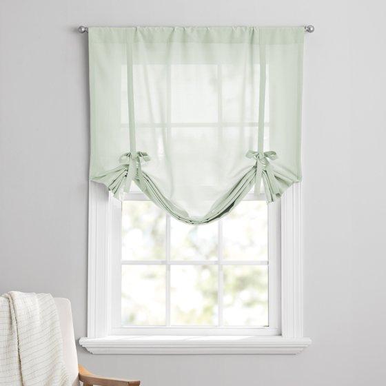 Mainstays Tie Up Balloon Shade Curtain Rod Pocket, Soft Sea, 42" x 63"