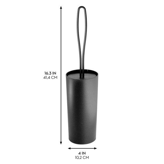 - FUNCTIONAL DESIGN- The Mainstays Loop Toilet Brush gets a modern makeover; The cylinder-shaped cover conceals a toilet bowl brush, and the sturdy-bristled brush head cleans hard-to-reach places, even under rims, for an exceptionally deep clean; An interior liner inside the base absorbs excess water to ensure the brush dries between uses; The sleek front keeps everything disguised and tidy for discreet yet stylish storage