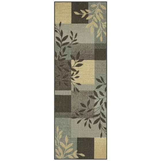 Instantly update your home with the Mainstays Leaf Block Value Loop Print Area Rug or Runner. This indoor rug collection features a modern twist to a traditional block pattern with an accented leaf design. With 5 different colorways available including multi-color, gray, blue, aqua and rust, it’s easy to fit any existing decor. The Mainstays Leaf Block Rug Collection is made with stain and fade resistant polyester yarn. All sizes of this style have non-slip latex backing to help keep it in place on your floors. The Mainstays Leaf Block Rug features a durable construction and stylish design at an affordable price, perfect for any room of your home; bedrooms, living room, dining room, hallway, or home office.