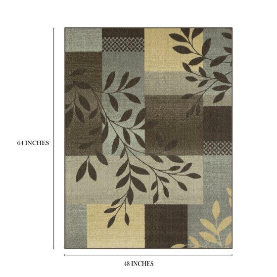Mainstays Traditional Leaf Block Gray Print Indoor Area Rug, 4'x5'4"