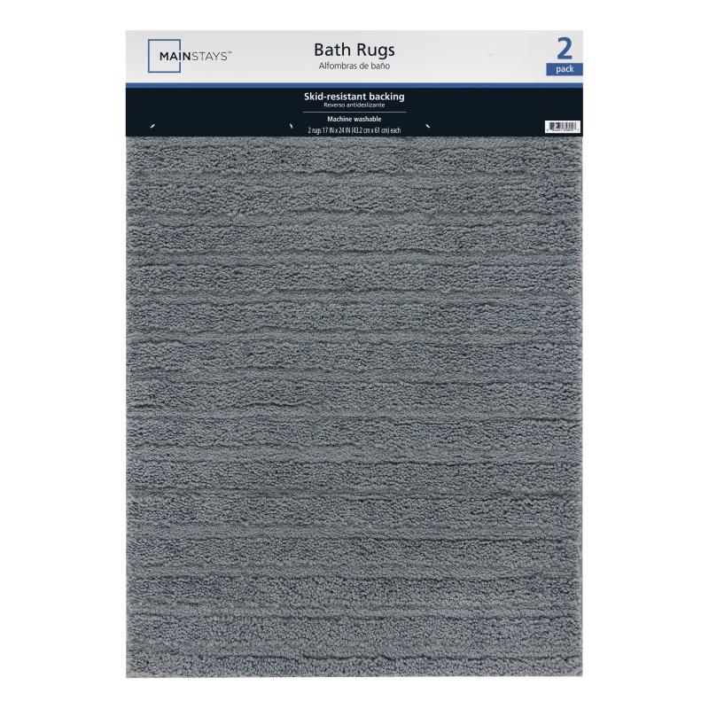 Mainstays Tufted Stripe 2 Piece Bath Rug Bundle, Soothing Gray, 17" x 24"