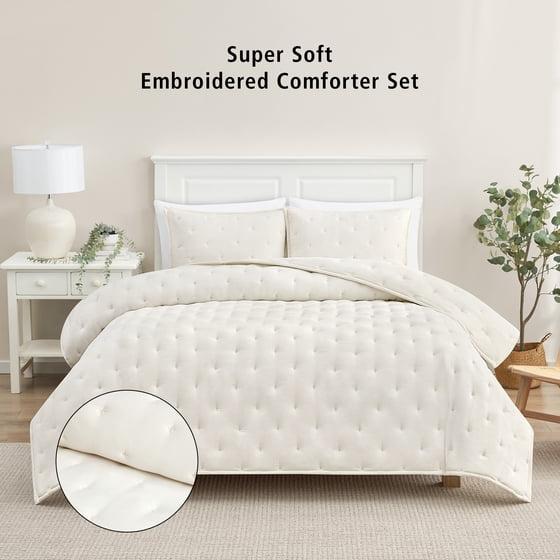 Mainstays King Comforter Set, Super Soft & Embroidered, 3-Piece, Cream