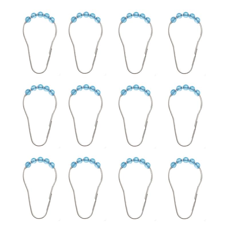 - All-in-one shower set includes PEVA shower curtain and 12 rust-resistant, chrome-finished rollerball hooks