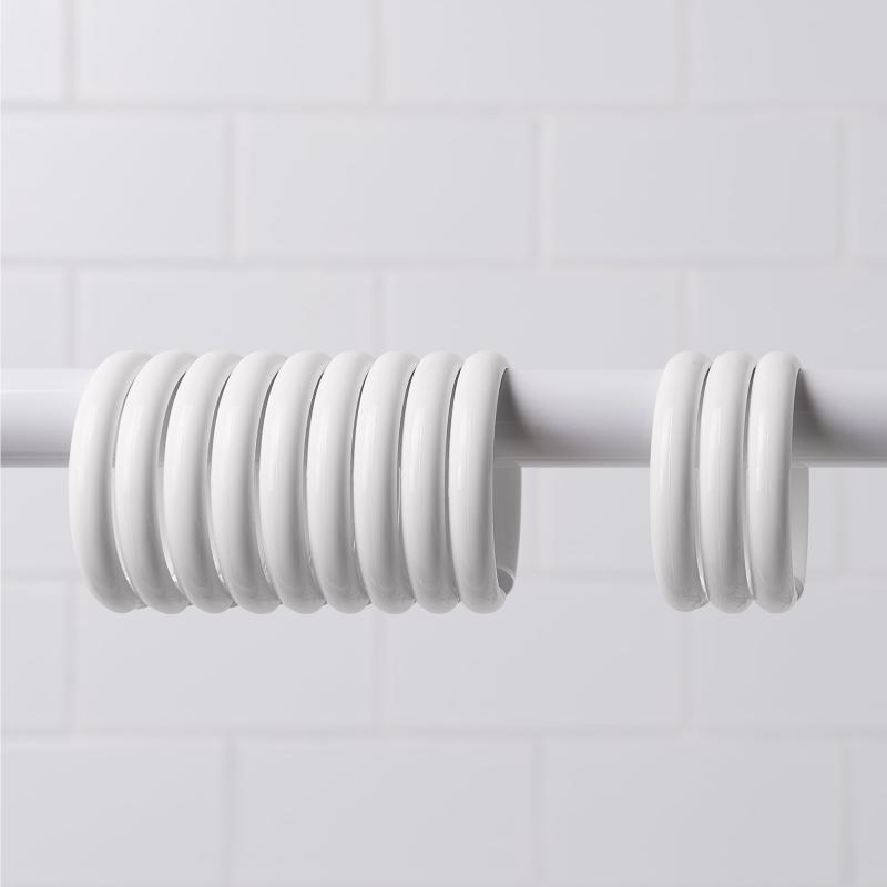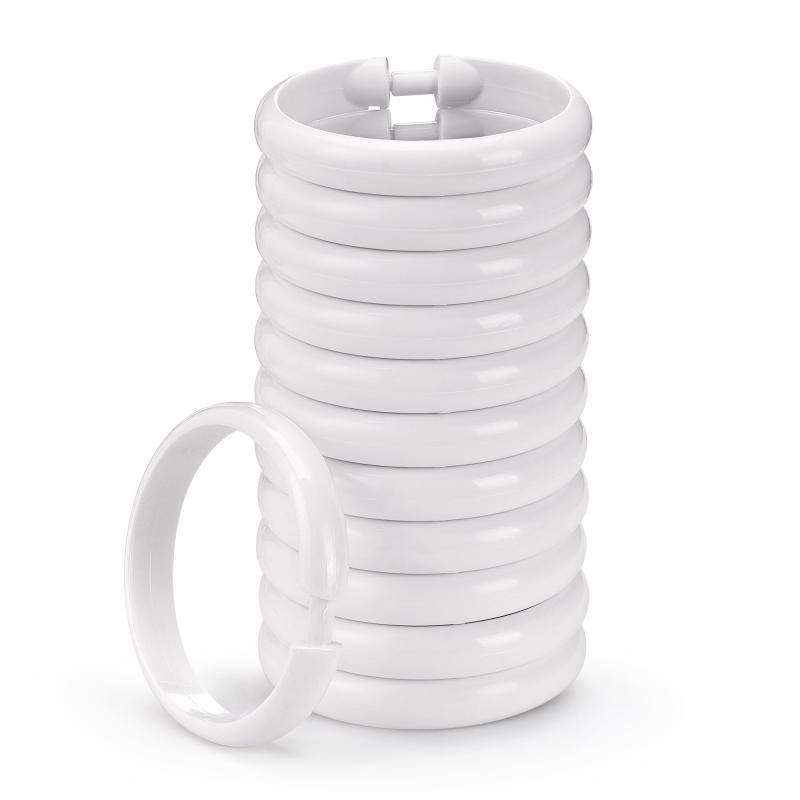 - Includes 12 durable plastic O-shaped shower curtain rings in white