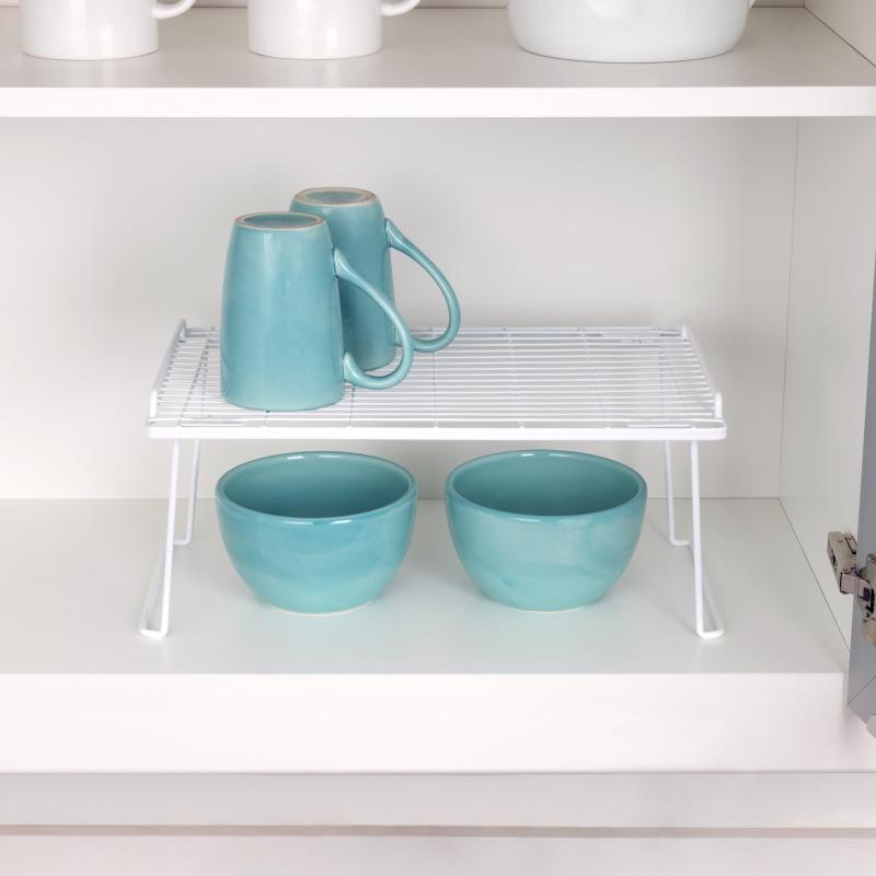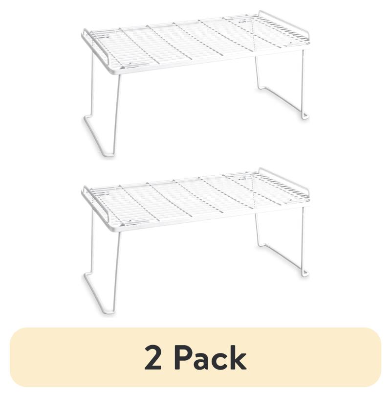 The Mainstays Folding Stacking Shelf helps keep your kitchen organized and provides more space wherever it is used. Its design provides a proper amount of space for your largest and smallest items, and the entire frame has a rust-resistant finish, the coated white wire is easy to clean simply wipe with a damp cloth. Use the shelves in your kitchen cabinets to organize your dishes, in your pantry to provide more space to store can goods and other foods. You will love the ease of the shelves and will want to have them in multiple rooms of your home! Use them in your closet, bathroom, pantry, kitchen, or anywhere you need extra space.