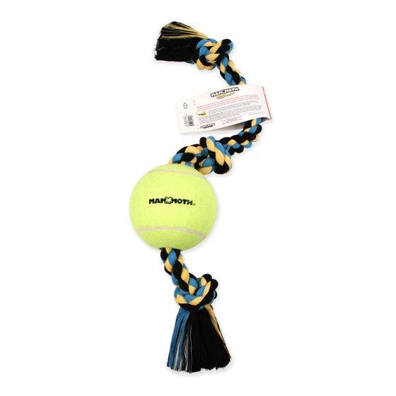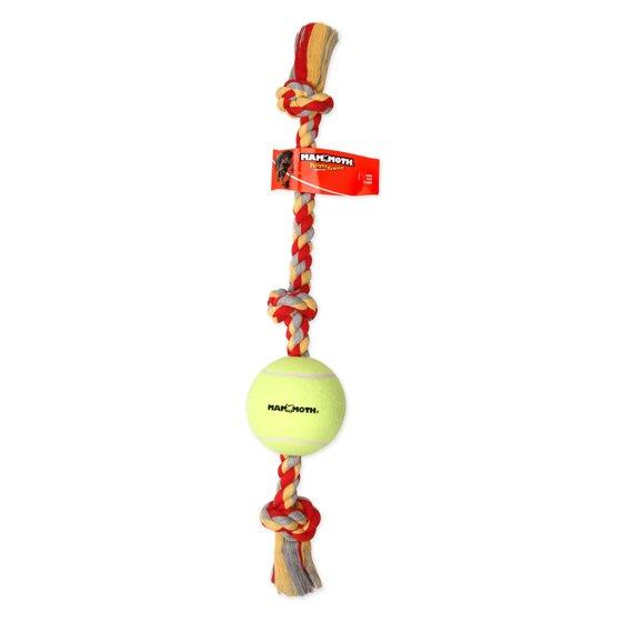 Mammoth Flossy Chews Cottonblend 3 Knot Tug with Big 6" Tennis Ball Rope Dog Toy, Extra-Large, 36", Assorted Colors