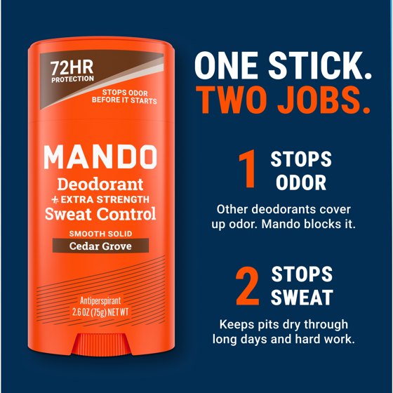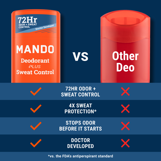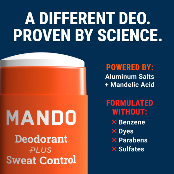 - STOPS ODOR BEFORE IT STARTS - Mando stops odor-causing bacteria before they cause a stink, unlike other deodorants that rely on scent to cover it up.