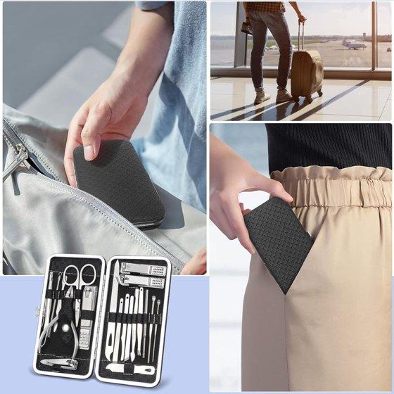 Comes with a portable synthetic leather case that is easily opened with a push of a button.The pedicure kit is also very lightweight, so you can carry it conveniently wherever you go, just put it in your handbag, car, and luggage and so on. This is ideal for travel or home use.Manicure SetGreat GiftThe 19 Pcs Stainless Steel Manicure Kit with a gorgeous leather suit, it is fashionable, practical and popular with family and friends.It is the best gift for your relatives, friends, parents, husband and wife.