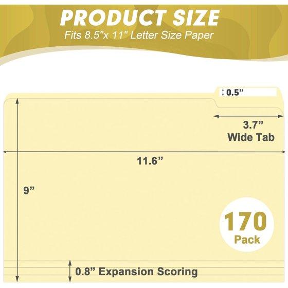 Manila Folders, 170 Pack 1/3 Cut Tab File Folders 8.5 x 11 Designed for Office and Classroom Use, Letter Size