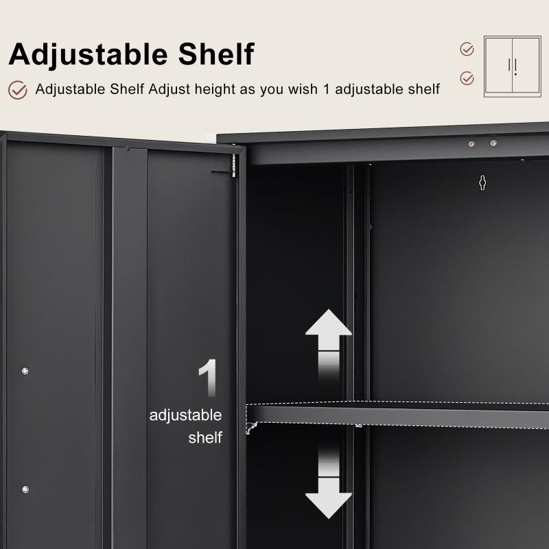 - The adjustable shelf allows you to customize the storage space to fit your needs, and the lockable doors provide secure storage for your belongings.