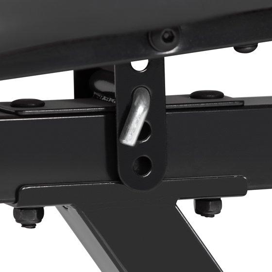 - 6-position adjustable back pad adjusts to upright, incline, decline, and flat