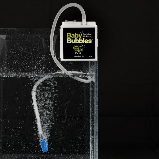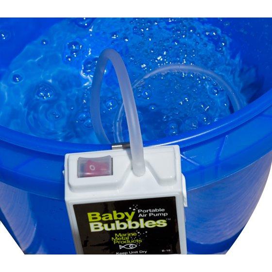 - Baby Bubbles aerates buckets or coolers up to 3-gallons of fresh or salt water to keep bait or aquarium fish alive.