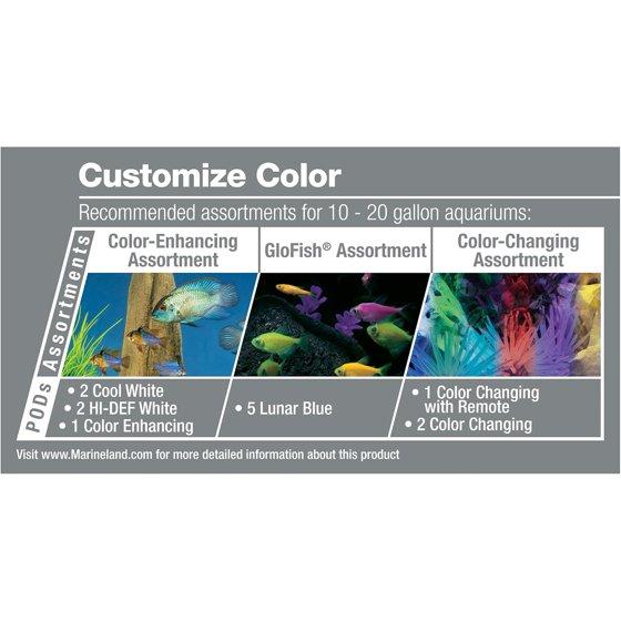 - CUSTOMIZE COLOR: Move or add PODs to highlight key areas in your aquarium and find recommended assortments for color-enhancing, color-changing and GloFish looks.