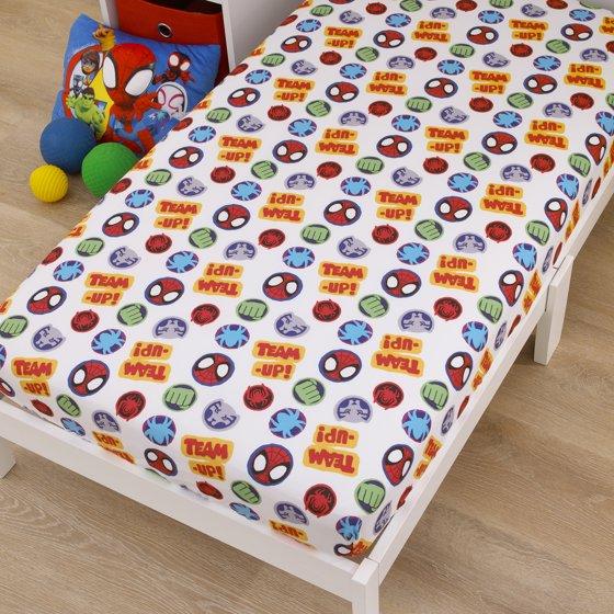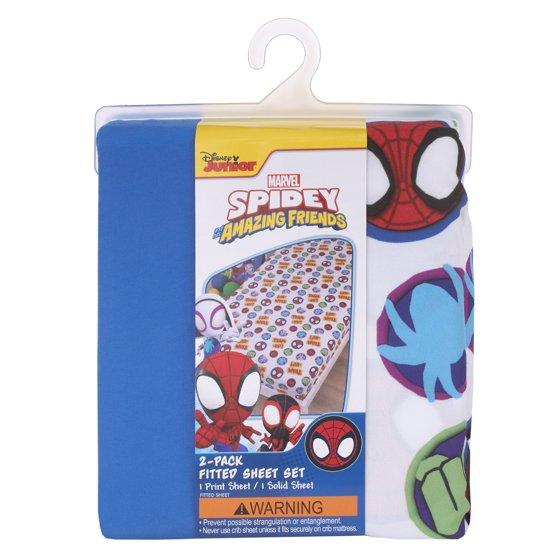 Marvel Spidey Let's Swing 2-Piece Toddler Fitted Sheet Set, Blue/Red