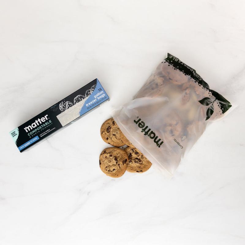 Matter Compostable Gallon Freezer Food Storage Bags, 15 Count