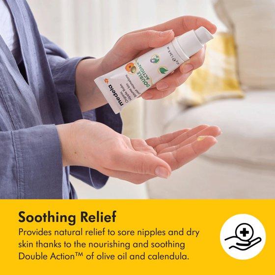 - Soothes & Relieves Sore Nipples: Medela's organic nipple balm provides natural relief to sore nipples and dry skin, thanks to the nourishing and soothing Double Action of olive oil and calendula