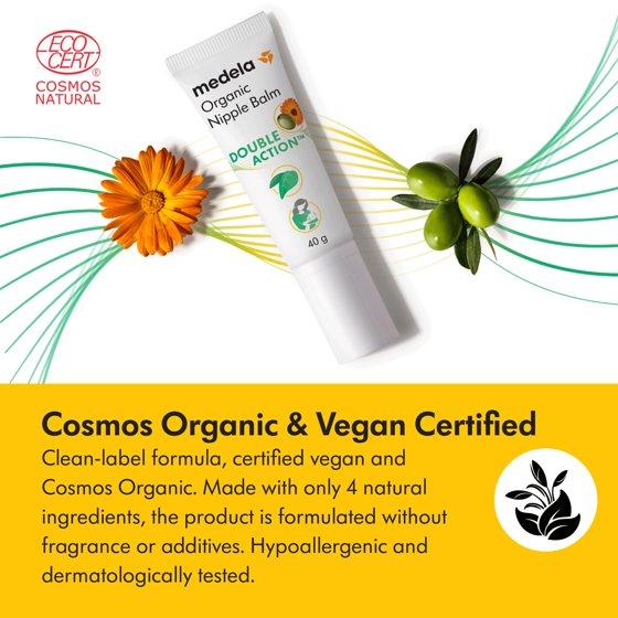 - Organic, Vegan & Clean: Made with just four natural ingredients, Medela organic nipple balm is hypoallergenic, dermatologically tested, free of fragrance and additives, COSMOS Organic-certified, and suitable for vegans