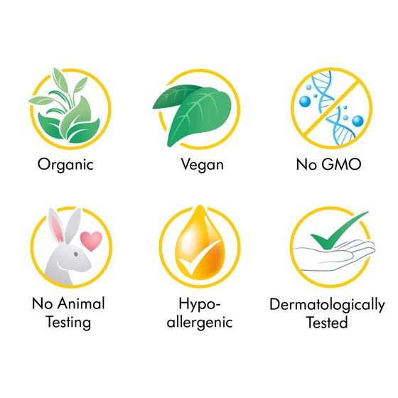 - Cosmos Organic and Vegan certified, hypoallergenic, and dermatologically tested.