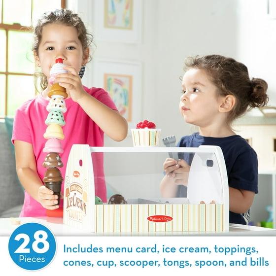 Melissa & Doug Wooden Scoop and Serve Ice Cream Counter With Play Food and Accessories (28 Pcs)